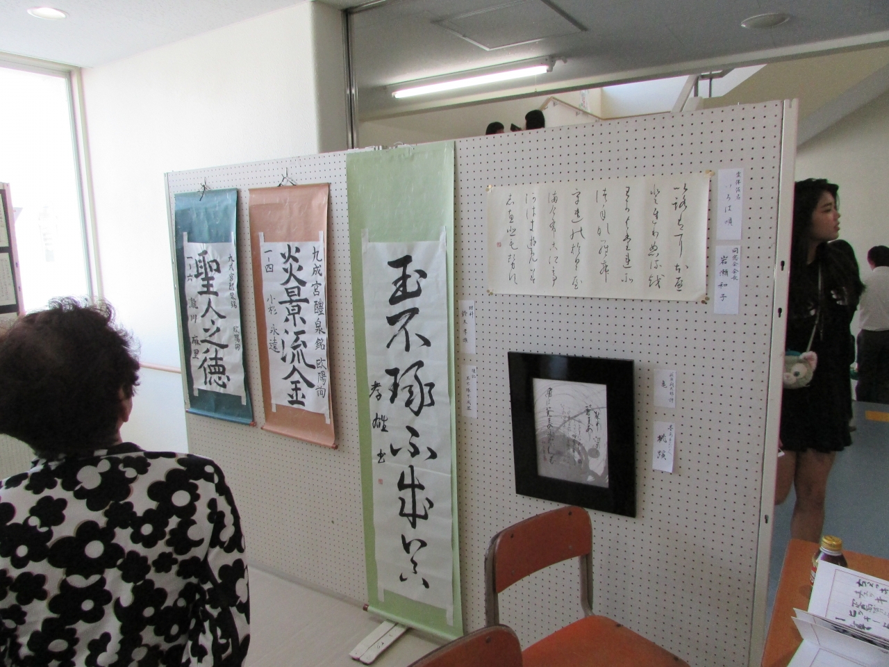 副会長の尾坂さんとホームページ委員の岩瀬君と三商祭に行ってきました。我々の頃とは大違い、とてもにぎやかな文化祭でした。今年も書道部へ作品を二点出させてもらいました。変体がなと空海が最澄に充てた手紙の臨書です。和室で華道部の作品を見て、茶道部のお手前をいただきました。展示時間が終わると全校生徒が体育館に集まり。クラス。部活別の表彰が行われていました。