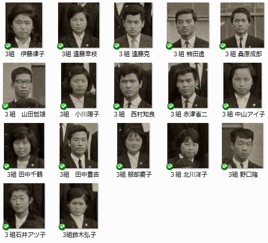 同じクラスになったことのない人もずいぶんいましたから、名入れは大変でした。ですから漏れている方や名前が違う方失礼があるかも知れません。33ki@tcsaa.jp に映像分秒を記載の上ご連絡ください。