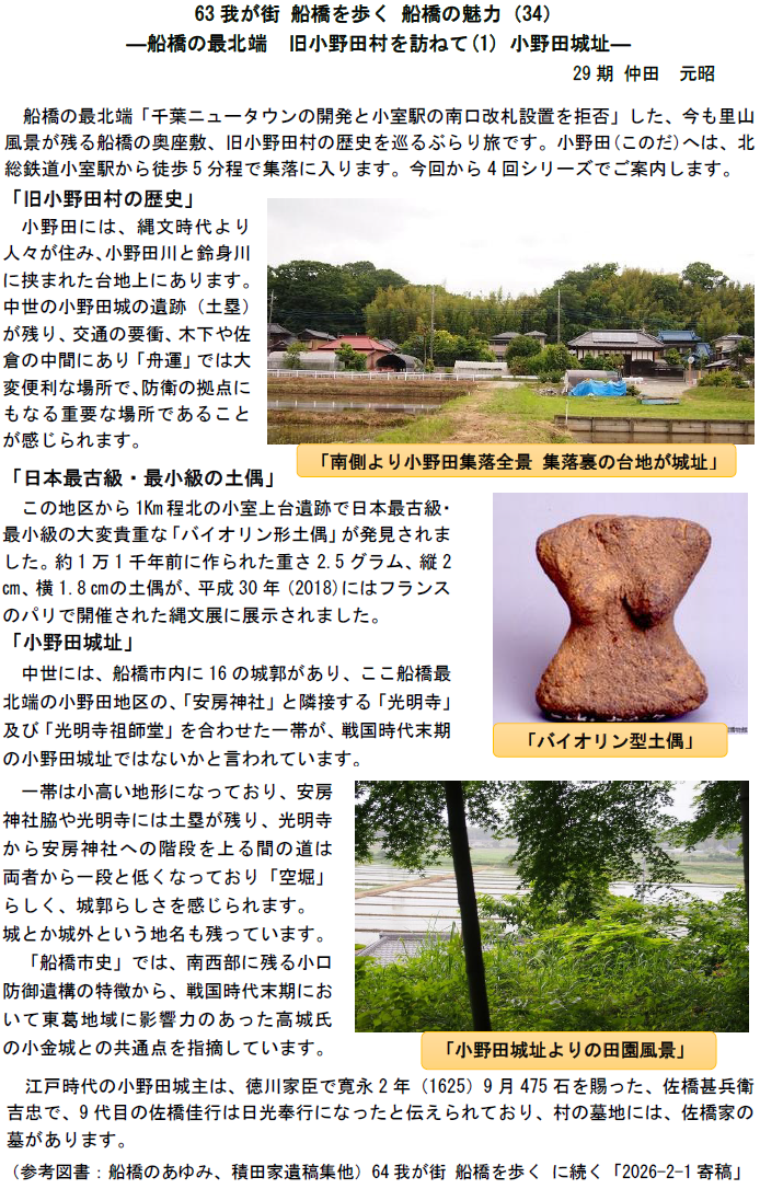 63 我が街 船橋を歩く 船橋の魅力(34)―船橋の最北端 旧小野田村を訪ねて(1) 小野田城址―