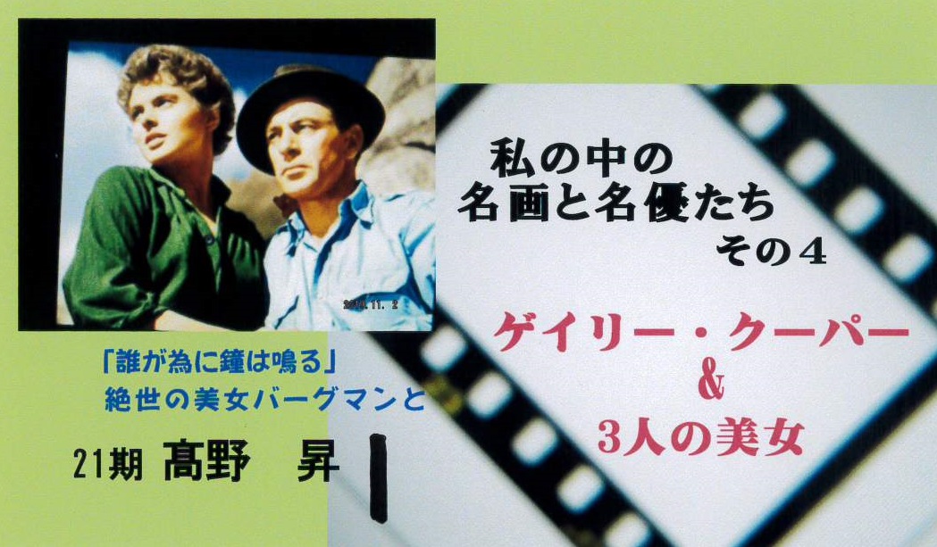 老朗好日-第五回- 私の中の名画と名優たち(その4) ゲイリー・クーパー & 3人の美女 21期 髙野